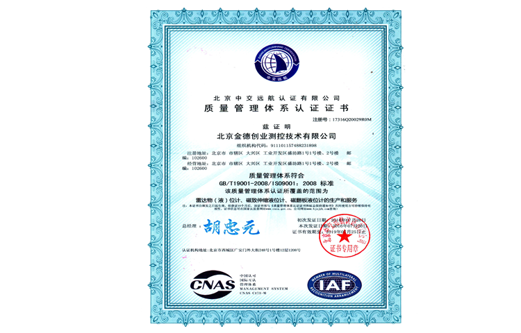 質(zhì)量管理體系認(rèn)證證書ISO9000