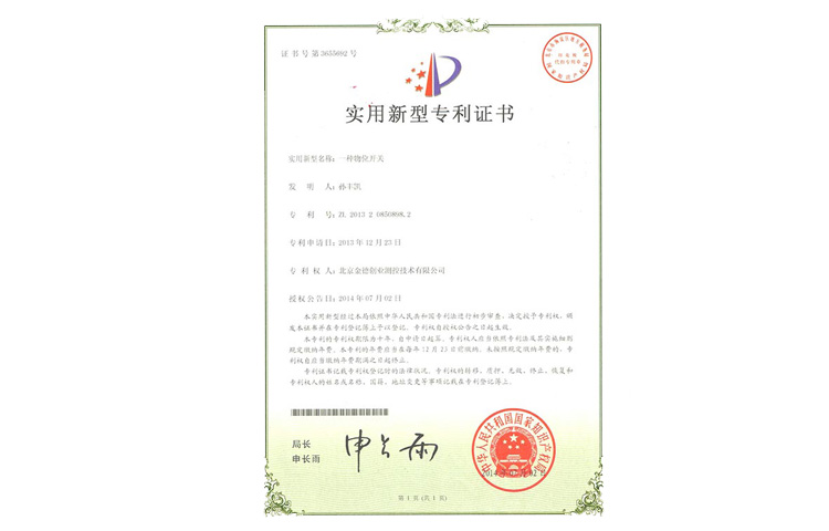 實(shí)用新型專利證書(shū)物位開(kāi)關(guān)