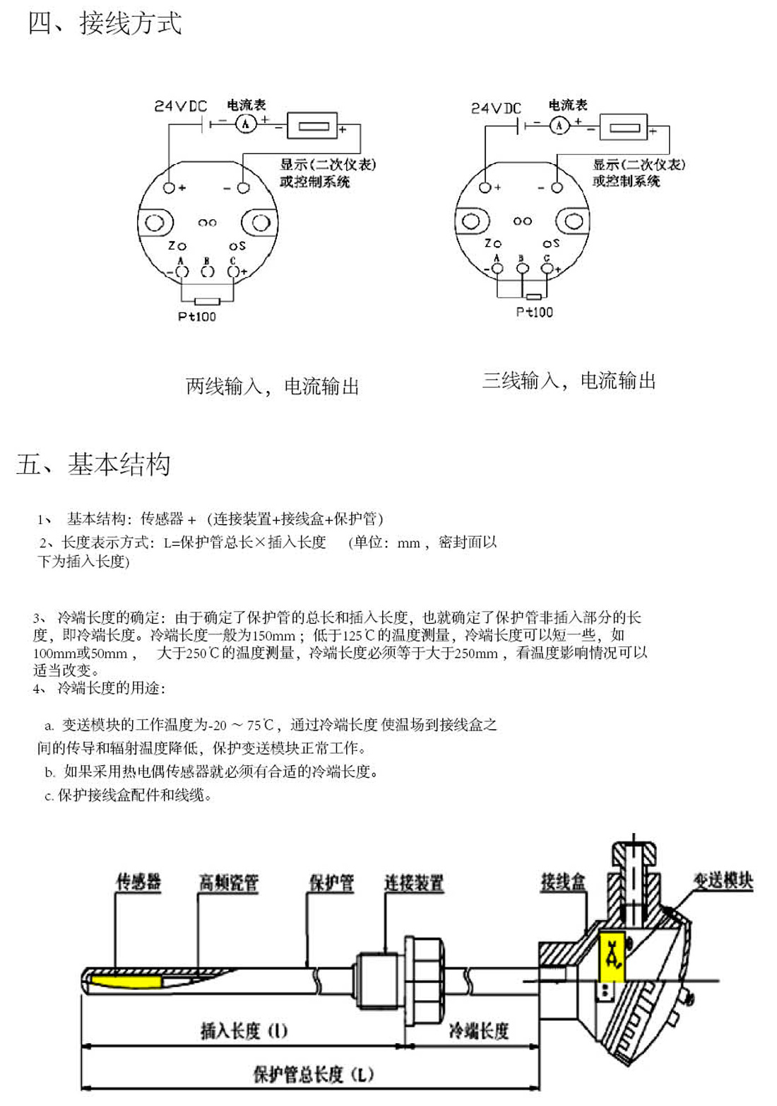 測(cè)溫探頭采用高阻型 Pt100 鉑電阻,精度高,穩(wěn)定性好。