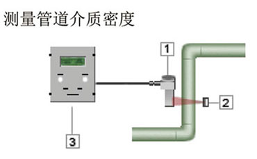 放射性密度計(jì)工作原理: 放射性密度計(jì)的工作原理是由放射源產(chǎn)生的伽馬射線穿過(guò)被測(cè)介質(zhì), 其中一部分射線被介質(zhì)吸收,剩余部分 射線被傳感器控制器所接收, 接收到的γ射線量越多,表明被測(cè)物密度越小,反之亦然,根據(jù)伽馬射線的衰減程度, 接收控制器 CPU 計(jì)算放射性通量的變化情況 從而測(cè)量被測(cè)介質(zhì)的密度, 并以標(biāo)準(zhǔn)的 4-20mA 電流形式 輸出。  | 測(cè)量管道介質(zhì)密度