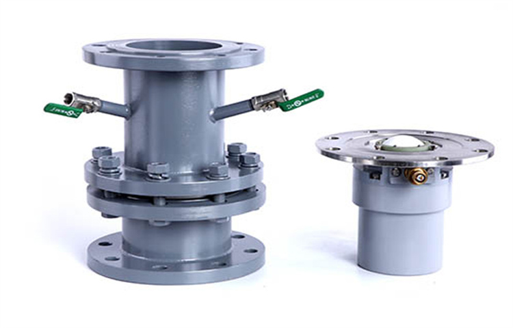 干熄焦?fàn)t高溫雷達(dá)的特殊保護(hù)裝置,設(shè)計了氮?dú)獯祾呓禍匮b置,采用特殊耐高溫、耐腐蝕材料作為隔板,將雷達(dá)與介質(zhì)進(jìn)行隔開,雷達(dá)波可以穿透隔板,不影響雷達(dá)的測量,最高可對溫度2000℃的爐體進(jìn)行測量。
